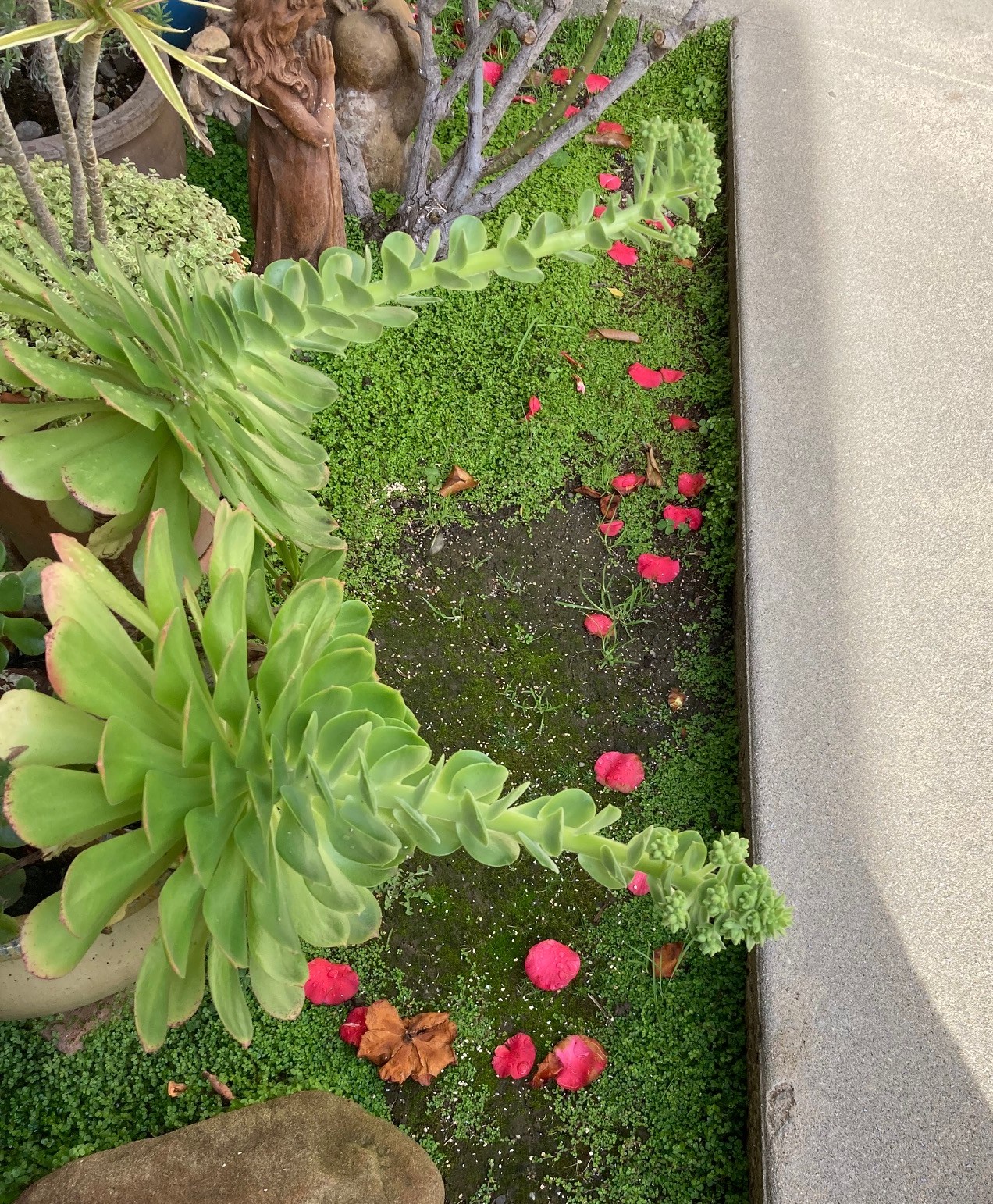 Adversity, Flowering Aeonium Mint succulents, Flowering Aloe Saponaria (Soap Aloa), Los Angeles/California, Self-Sacrifice, Succulent Garden Winter 2025, White Azalea flowering plant